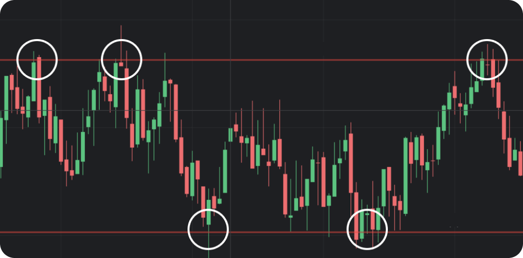 To see the resistance or support level, connect 3+ local price peaks or lows. The more often the price touches the level you’ve drawn, the stronger the resistance/support is.