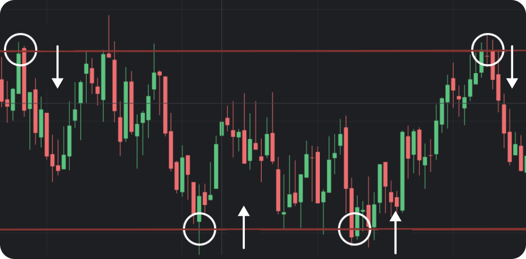 There is an approach in trading that allows forecasting the moment when the price seems to change its direction. It’s called support (bottom of the screenshot) and resistance (top of the screenshot) levels. To see them, you should use some drawing tools.