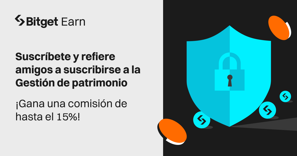 Para mostrar nuestro agradecimiento por tu apoyo, hemos lanzado una promoción especial: durante este periodo, cuando te suscribas a la Gestión de patrimonio de Bitget o refieras amigos, no solo te beneficiarás de los retornos de tu Gestión de patrimonio, sino que también recibirás comisiones en función a tus ganancias y las de tus amigos. ¡La promoción ofrece una impresionante comisión de hasta el 15%!
