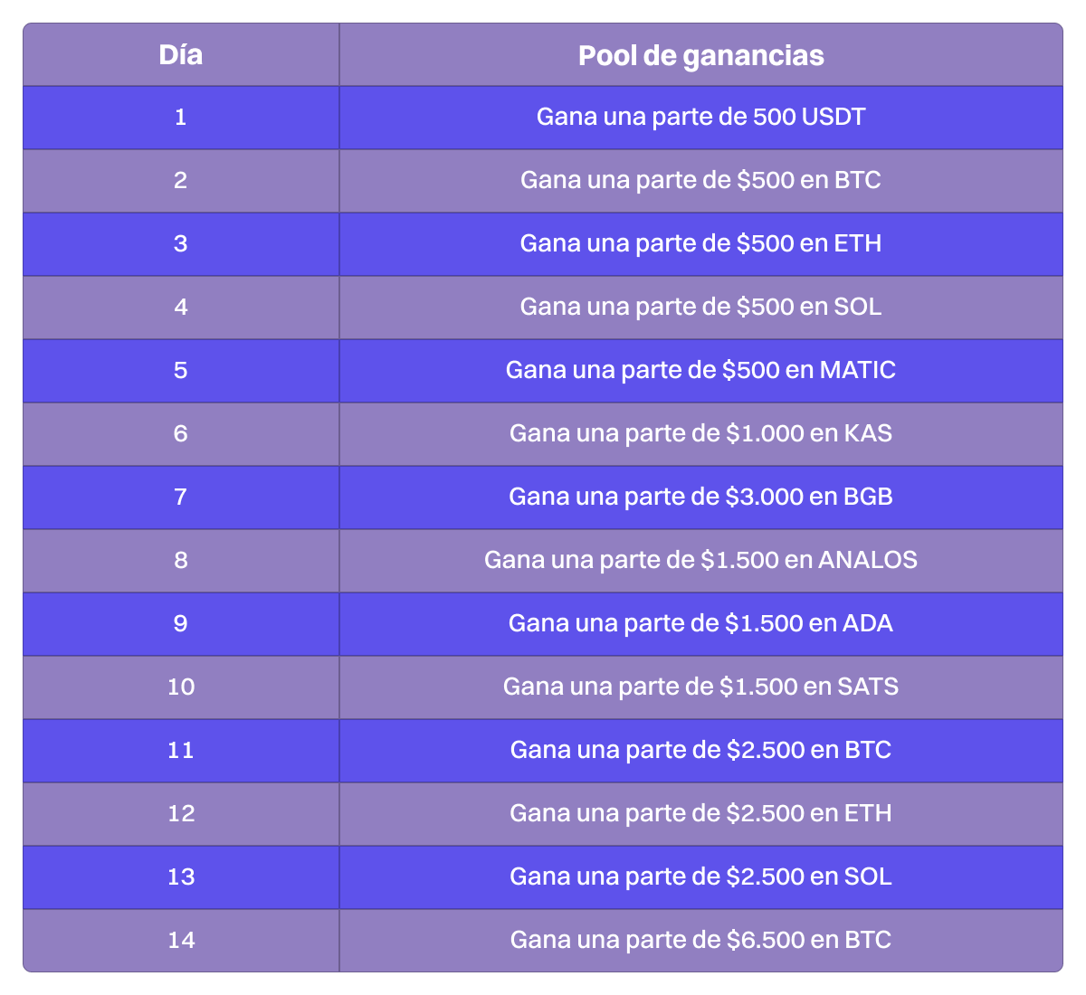 Gana una gran variedad de cripto simplemente haciendo trading todos los días y acumula tus ganancias. Entrar en el mundo cripto nunca fue tan fácil.
