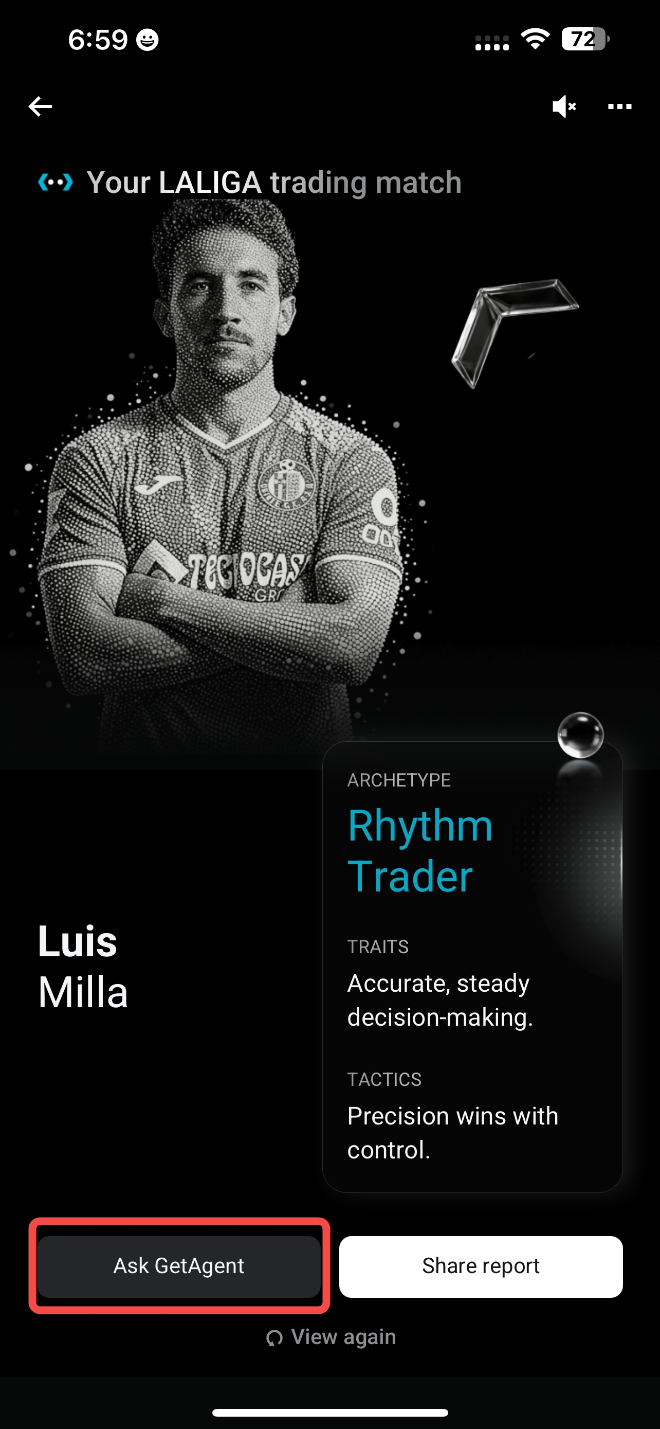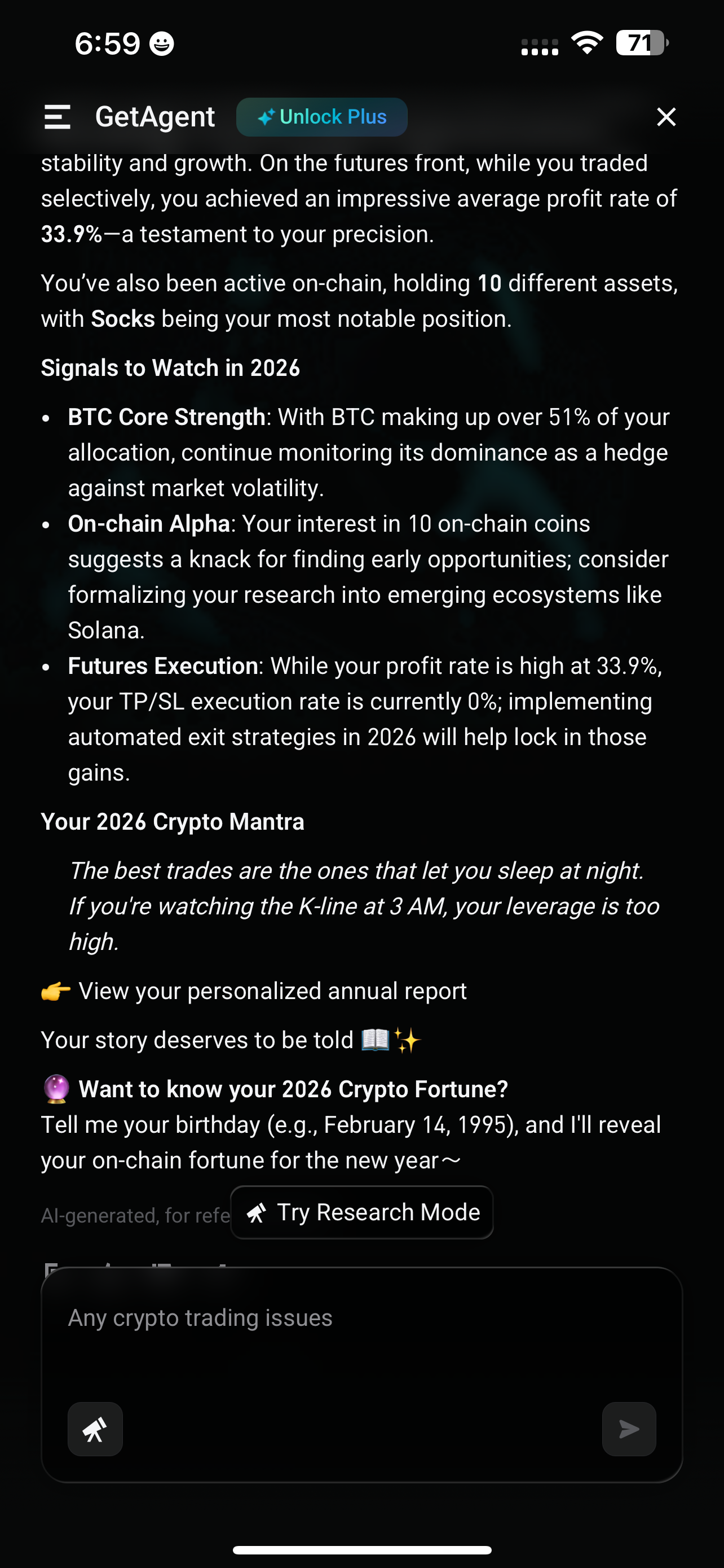 3. Toca "Preguntar a GetAgent" para generar tu nuevo mantra cripto.